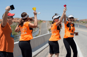 I don’t even remember my speed, but I am pretty sure it was around 7 mph for a good while as I climbed and the winds whipped across the open plains of Hurricane, Utah. Who knew it was so aptly named? I kept thinking about two of my athletes, Orlando and Eric, who had done this race under different, but equally hard conditions and they toughed it out- I could too! I kept repeating Kipling’s lines, and thinking about how much I wanted to finish this race and all that it represented. I kept thinking about my clients who had come all the way out here to support me and I could not let them down, and all the people who had face-booked me, called me, and emailed me with support prior to the race, and all the people who were watching my progress- from Michigan, N. Carolina, and Florida, to London and Wales. I could not understand how all my preparation could leave me feeling so slow and weak as I climbed straight into a head wind.