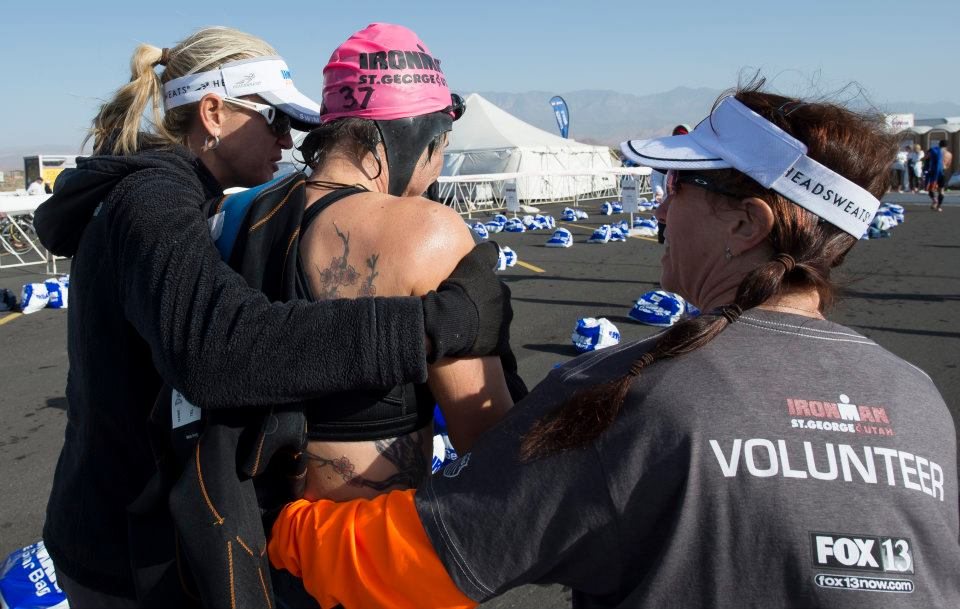 Living in the true flat lands of south Florida, I was suitably nervous about the hills out west, but diligently went up to Clermont to train, rode big gears into the wind down south and when I got out to Utah was pleasantly surprised to see the hills were not any harder than I had anticipated. I swam in Sand Hollow Lake prior to race day, and while there was a little more chop than I expected, it was not too bad and the “balmy,” 62 degree water actually felt rather nice. I ran on the course, and even those inclines were not bad and all those damn bridge repeats I did in training seemed to have paid off.