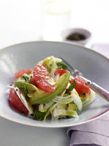 3. Add the fennel, the remaining dressing, and the mint to the grapefruit and toss well. Gently combine the avocado with the grapefruit and fennel and divide among serving plates. Season with salt and pepper to taste, sprinkle with cracked coriander, if using, and garnish with fennel fronds.